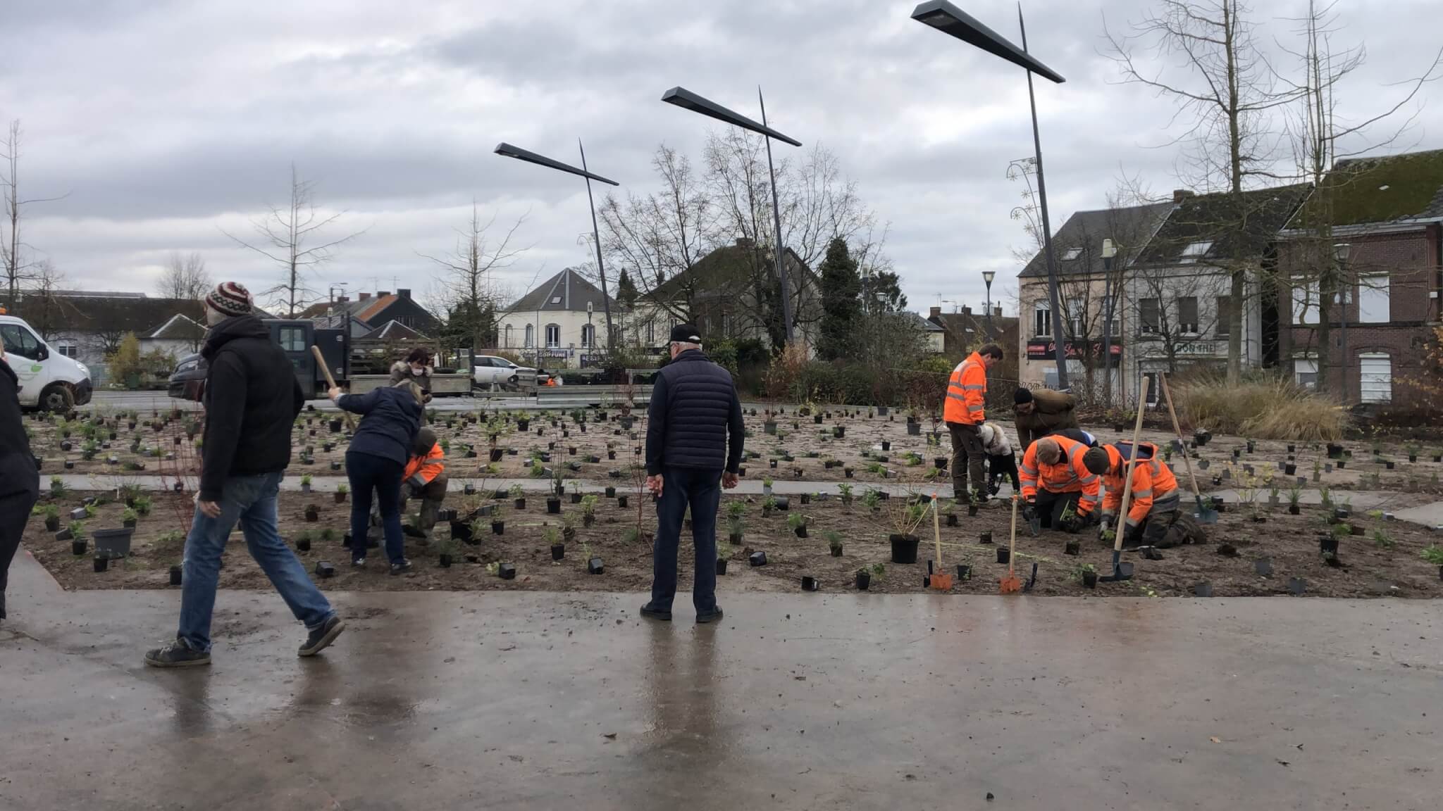 Il est prévu dans le cadre du projet de renouvellement urbain de végétaliser une grande partie de la place et d’y aménager des espaces de vivre ensemble. Suite à nos concertations et en partenariat avec l’équipe de maîtrise d’œuvre du projet ANRU, une partie de la place a été débitumée et SEED à eu l’occasion d’organiser une grande journée de plantation, ouverte au public.