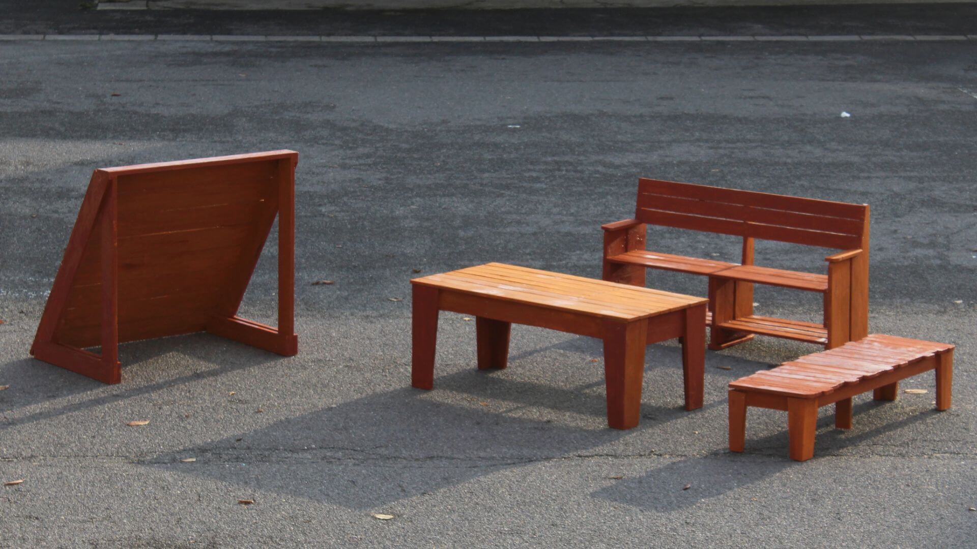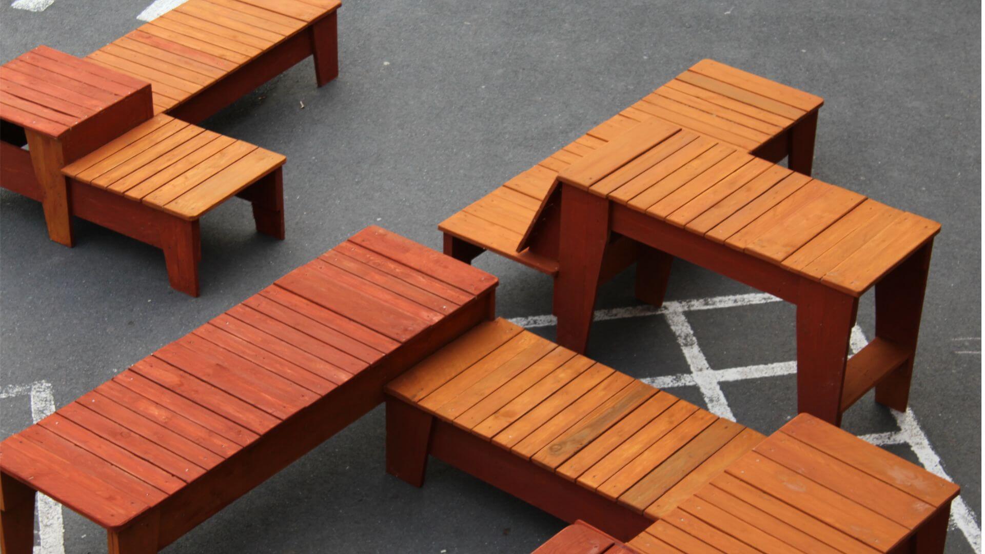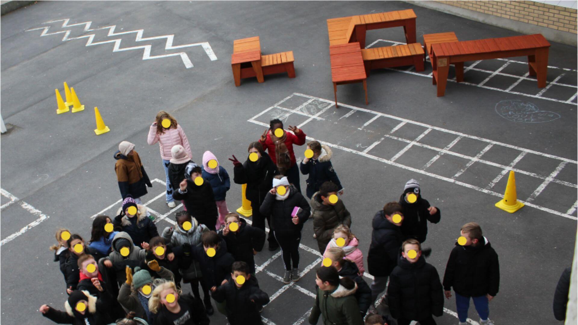 Les classes de CE2 et CM1 ont imaginé une série de mobiliers pour leur cour pour répondre aux divers usages de la cours qui sont ressortis lors de leurs travail de groupe (table pour dessiner, banquette avec des rangements, banc pour rêver et une cage de foot).